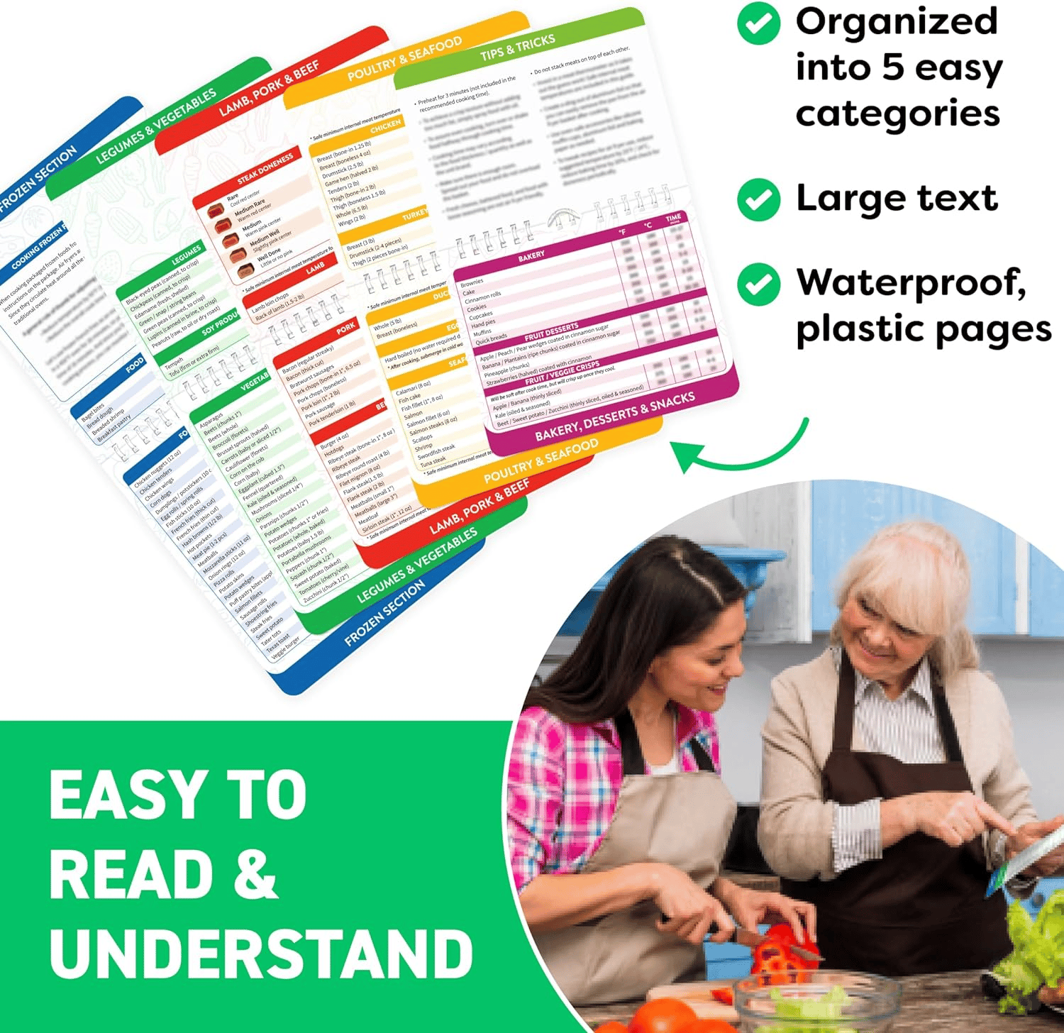 - Magnetic air fryer cheat sheet magnets cooking chart - 7” x 6” inches with sturdy plastic pages. Conveniently hang cooking accessories measurement magnet or stick on fridge for quick viewing. Waterproof & tear-proof air fryer chart magnetic with strong magnet that will provide years of value.