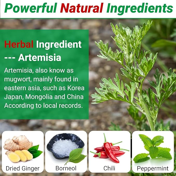 - Natural Herbal Self Heating: Natural. Artemisia extract, also contains capsaicin, ginger. While relaxing, those powerful herbs continuously heating to promote blood flow & oxygen to loosen muscles and reduce soreness